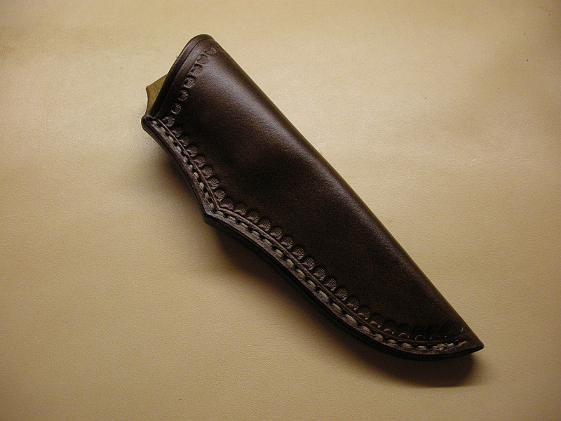 Messerscheide gefärbt, punziert, polierte Kanten.