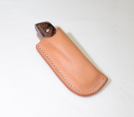 Etui für Klappmesser, naturbelassen, nass angepasst, Handnaht, polierte Kanten.