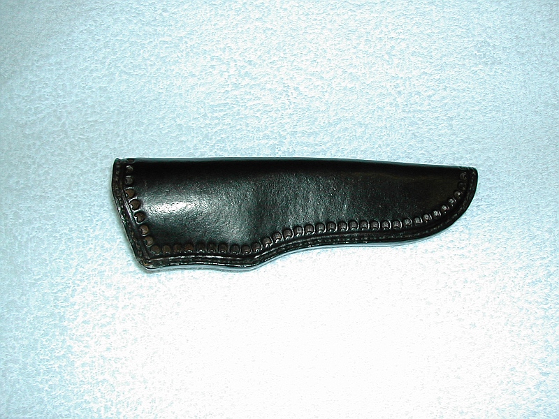 Messerscheide punziert, mit Kalbsleder ausgelegt, polierte Kanten.