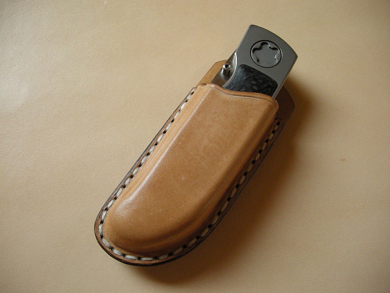 Offenes Etui für Klappmesser mit schräg aufgesetzer Lasche, naturfarben,
