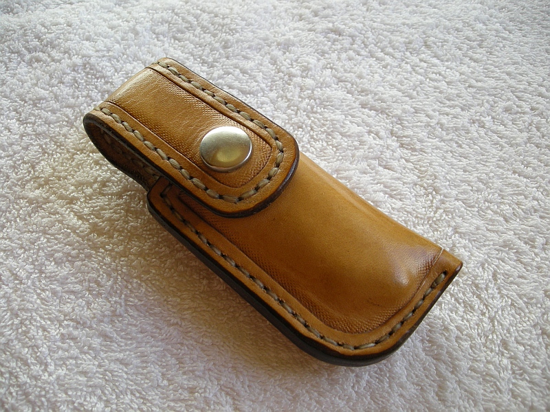 Klappmesserscheide mit umgebogener Lasche, naturbelassen.