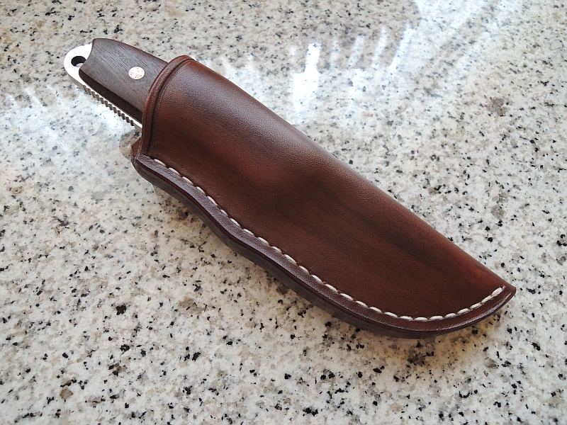 Einfache Messerscheide, Handnaht, polierte Kanten.