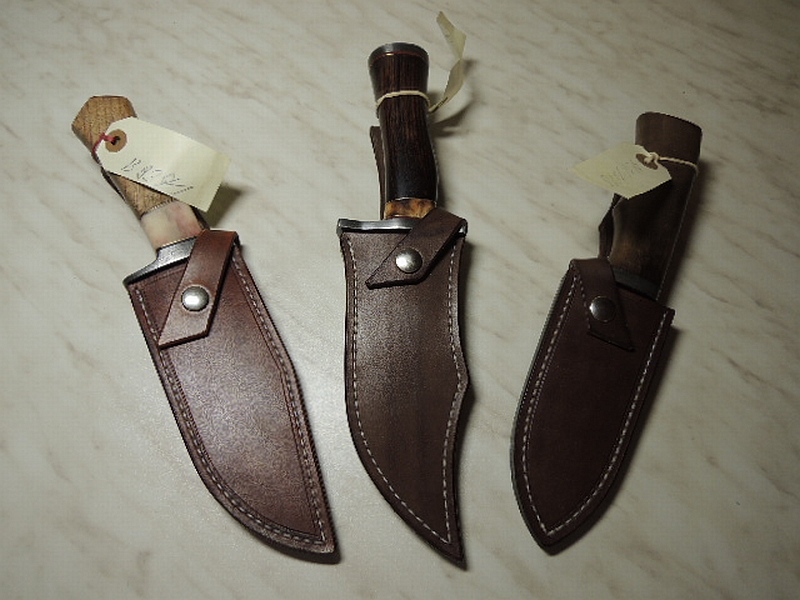 Messerscheiden mit Überwurfsicherung, Handnaht, polierte Kanten.
