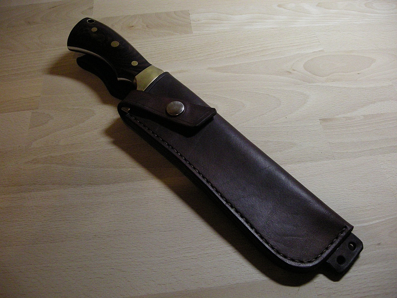 Große Jagdmesserscheide, Überwurf, Handnaht, polierte Kanten.