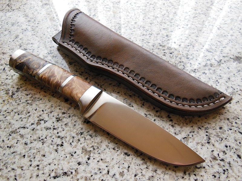Messerscheide mit Randpunzierung, hellbraun, polierte Kanten.