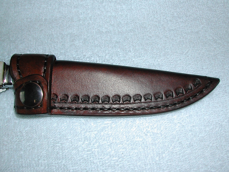 Messerscheide für Jagdnicker mit Druckknopf, Punzierung und polierte Kanten.